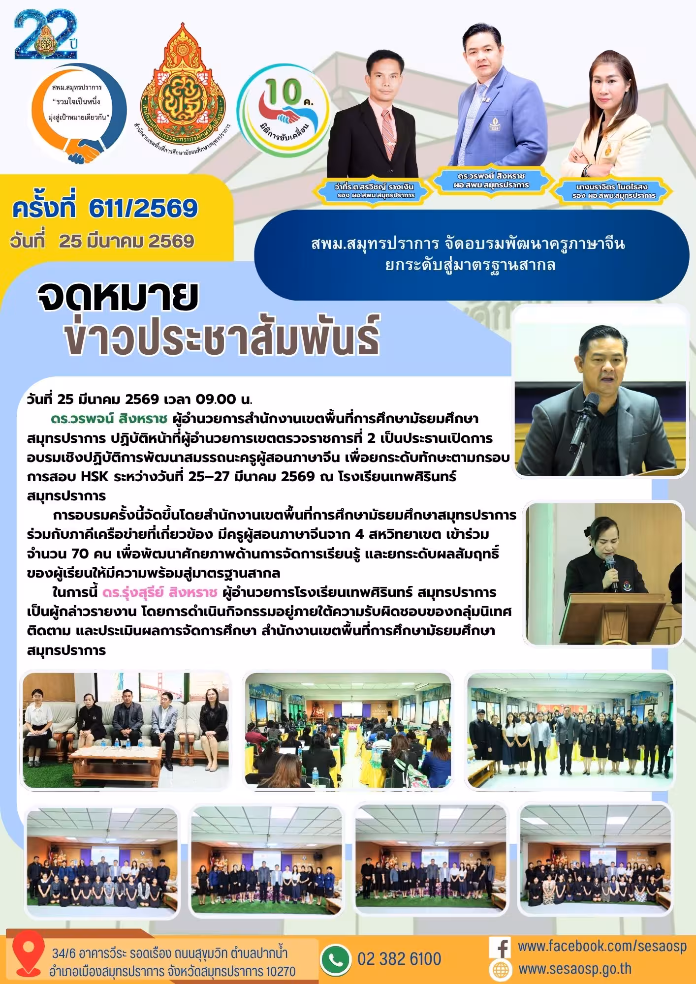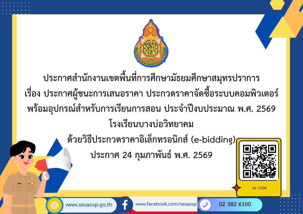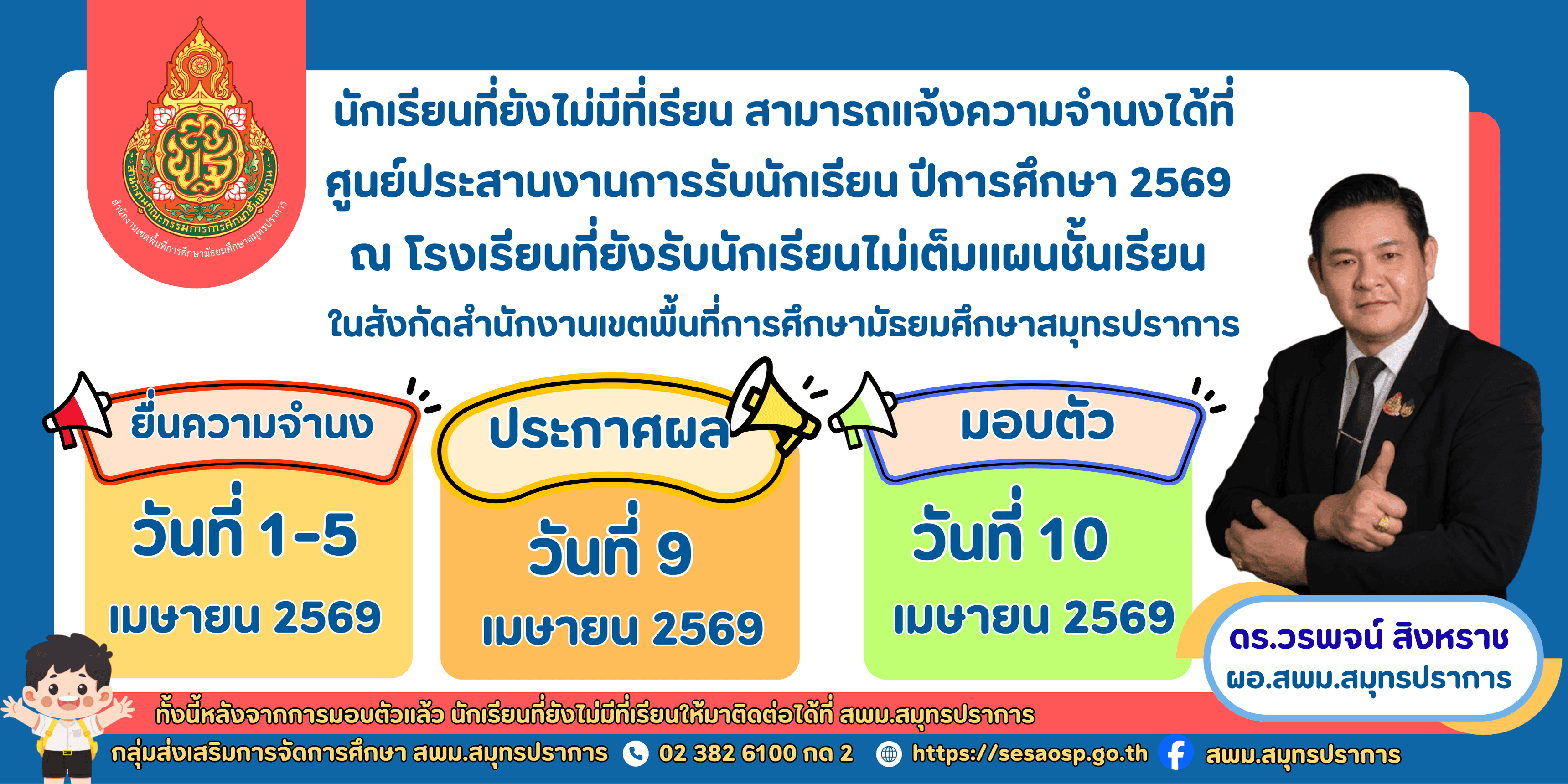 ประกาศ อ.ก.ค.ศ. เขตพื้นที่การศึกษามัธยมศึกษาสมุทรปราการ เรื่อง ผลการพิจารณาย้ายข้าราชการครูและบุคลากรทางการศึกษา ตำแหน่ง ครู (การย้ายกรณีปกติ) ประจำปี พ.ศ. 2569 รอบที่ 1 สังกัดสำนักงานเขตพื้นที่การศึกษามัธยมศึกษาสมุทรปราการ