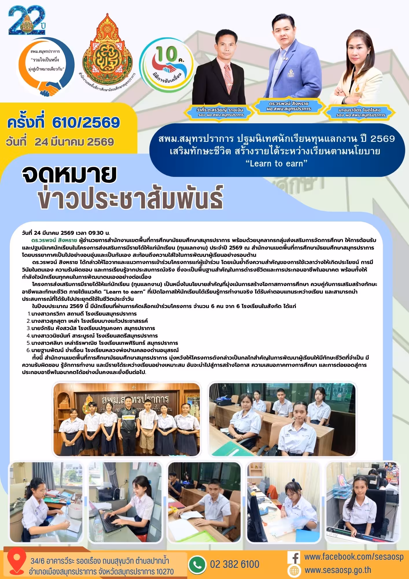 ประกาศสำนักงานเขตพื้นที่การศึกษามัธยมศึกษาสมุทรปราการ เรื่อง มาตรการประหยัดพลังงานเพื่อรองรับสถานการณ์วิกฤตการณ์ในตะวันออกกลาง