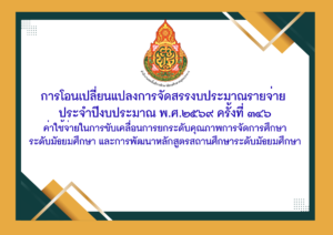 - รายงานผลการดำเนินการเพื่อส่งเสริมคุณธรรมและคุณธรรมและความโปร่งใสภายในสำนักงานเขตพื้นที่การศึกษา ประจำปีงบประมาณ พ.ศ. 2567